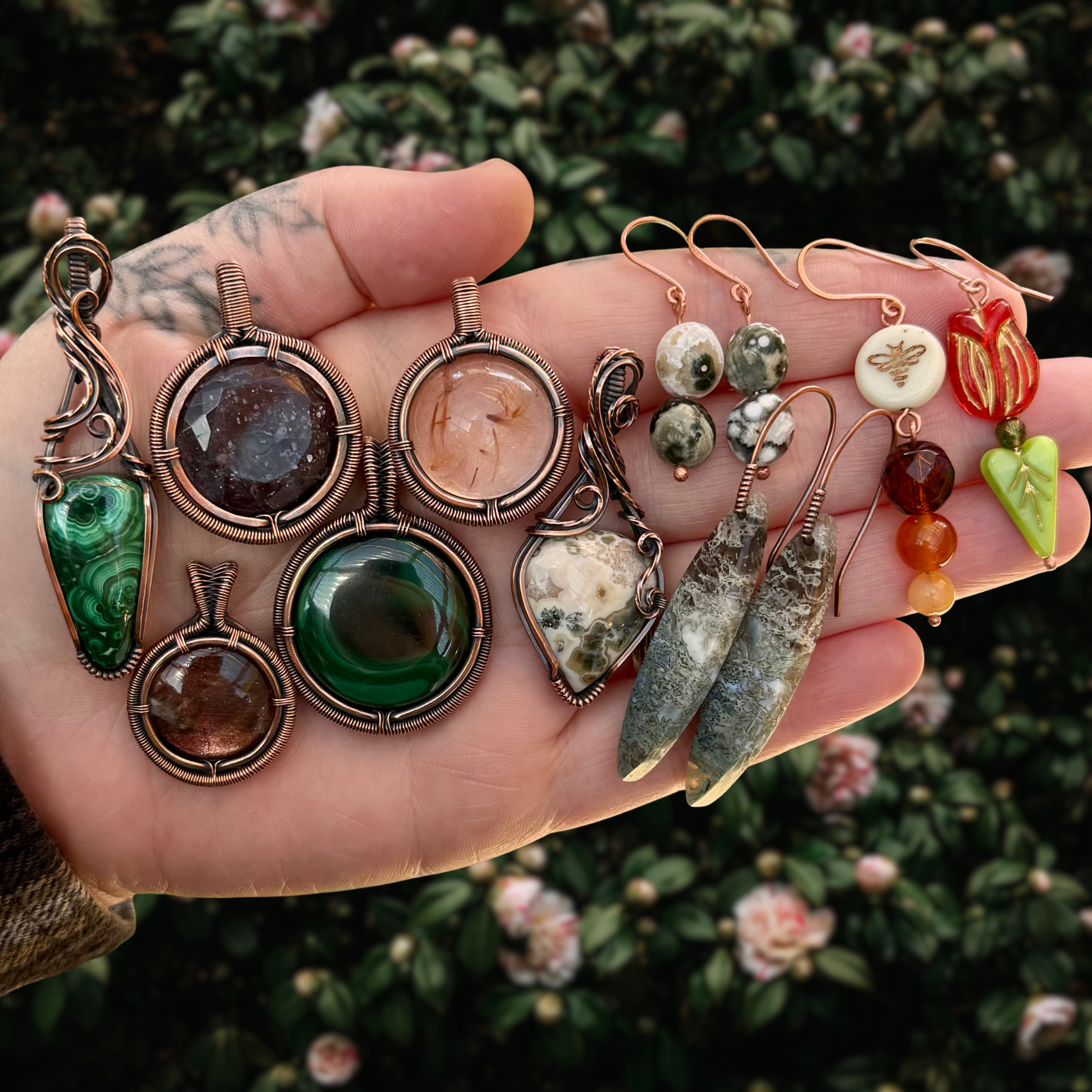 Ocean Jasper Antiqued Copper Pendant & Earring Set