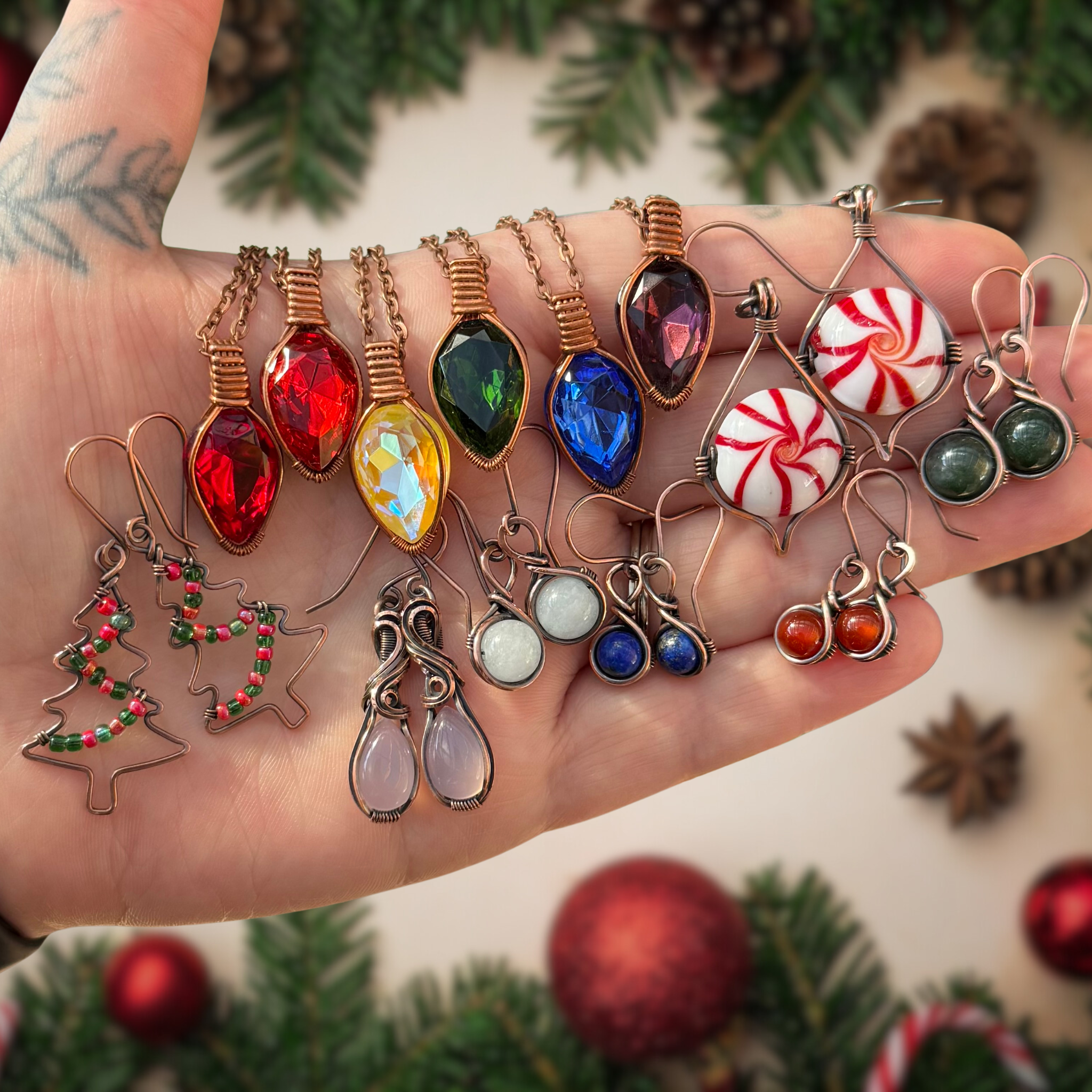 Extra Special Imperfect Winter Scene Copper Wrapped Pendant Featuring Festive Glass Beads