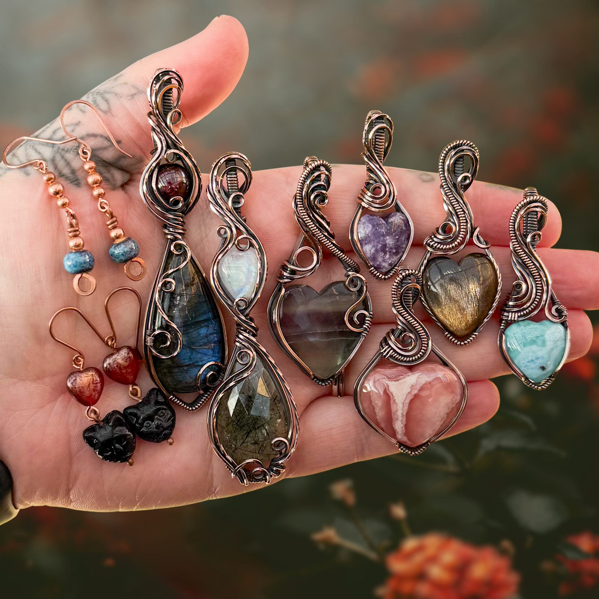 Blue Labradorite & Garnet Antiqued Copper Pendant