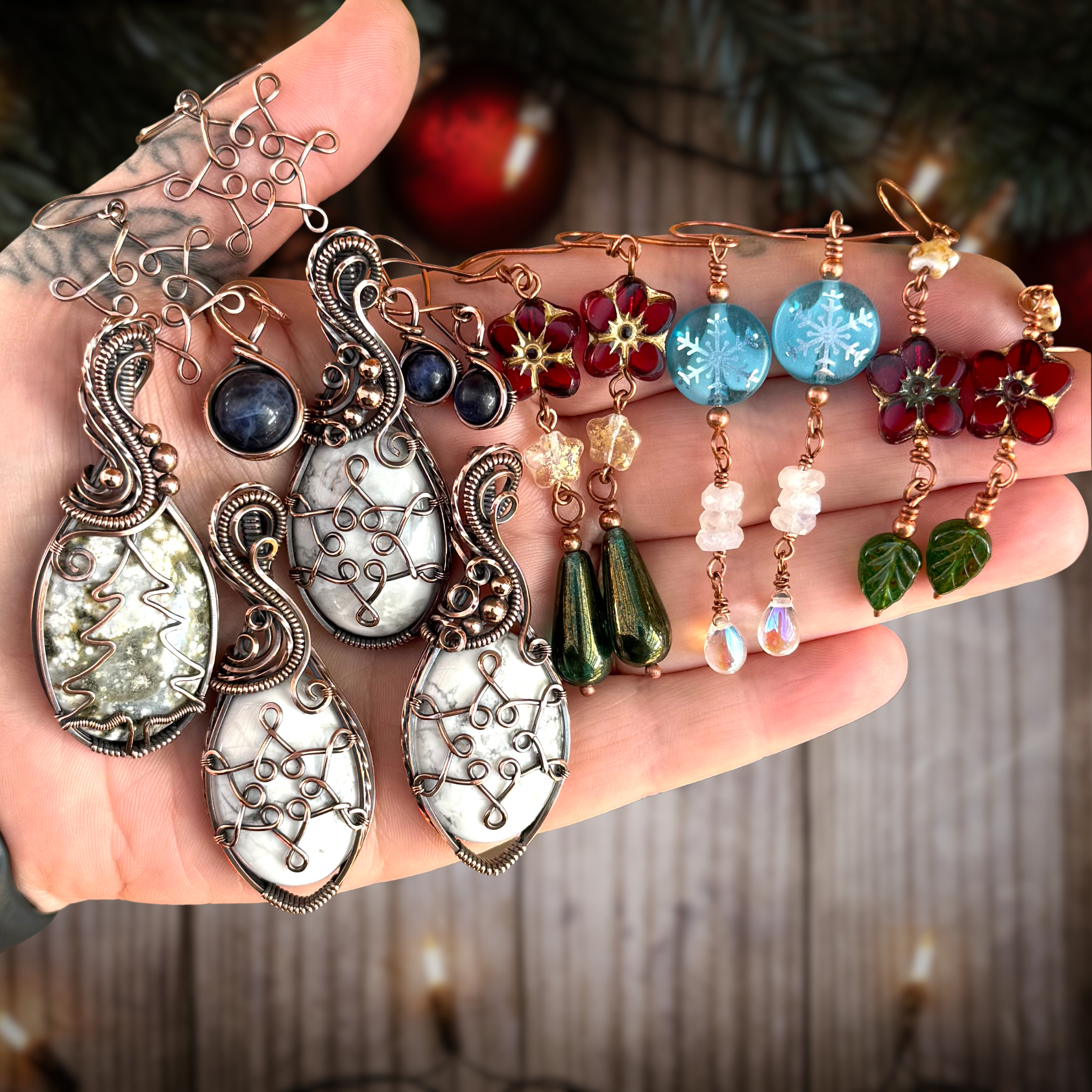 Poinsettia, Star, & Gold/Green Teardrop Dangle Earrings