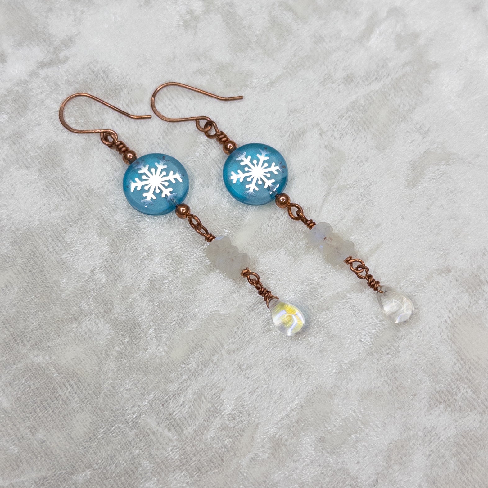 Snowflake, Moonstone, & Droplet Dangle Earrings