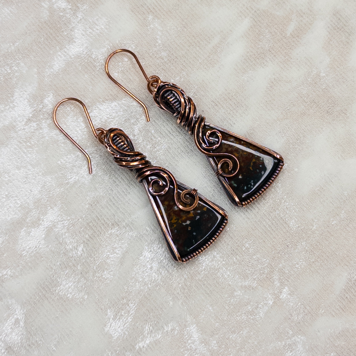Fancy Jasper Antiqued Copper Earrings