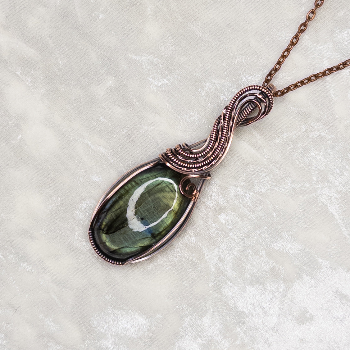 Green With A Splash Of Blue Labradorite Antiqued Copper Pendant