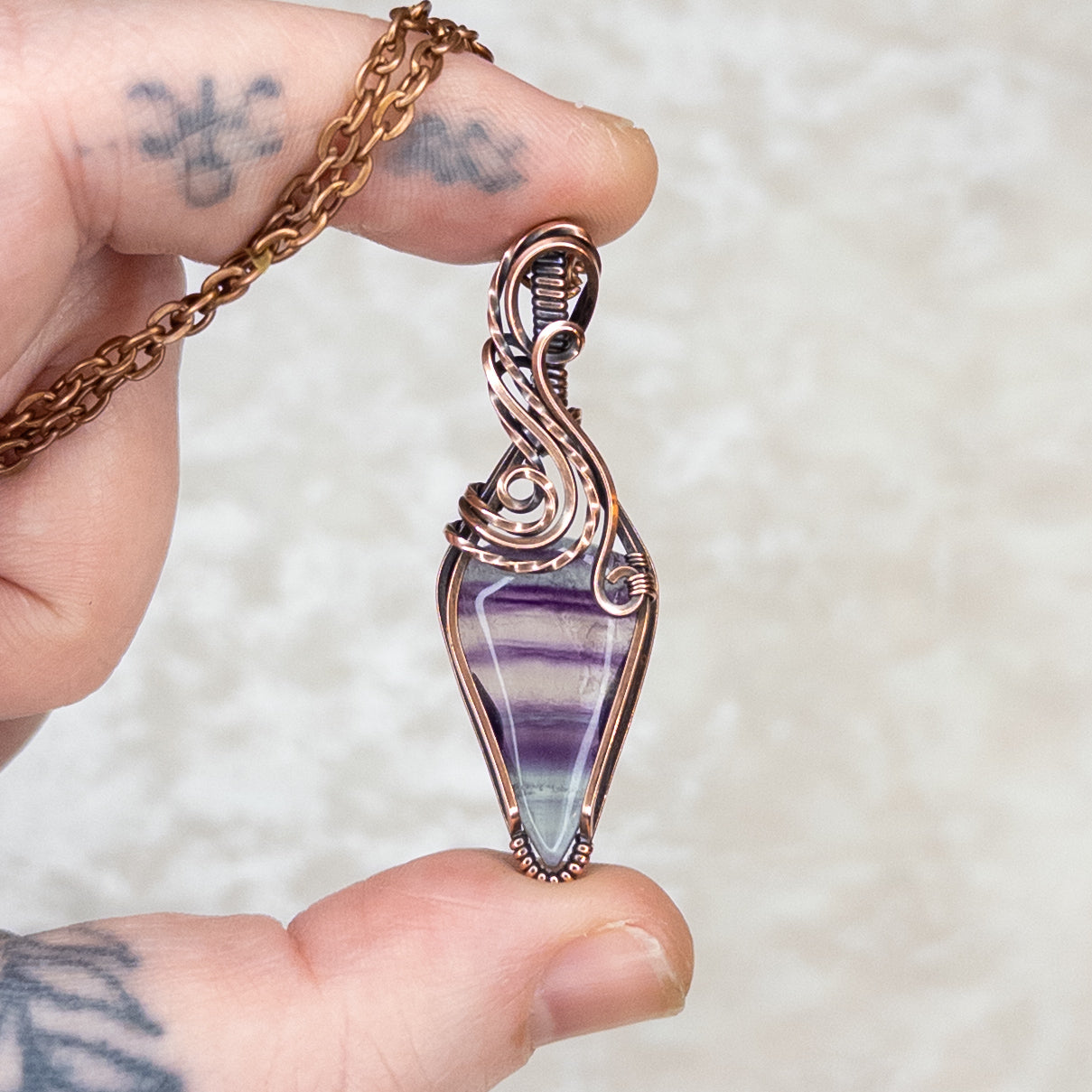 Purple & Blue Banded Fluorite Antiqued Copper Pendant