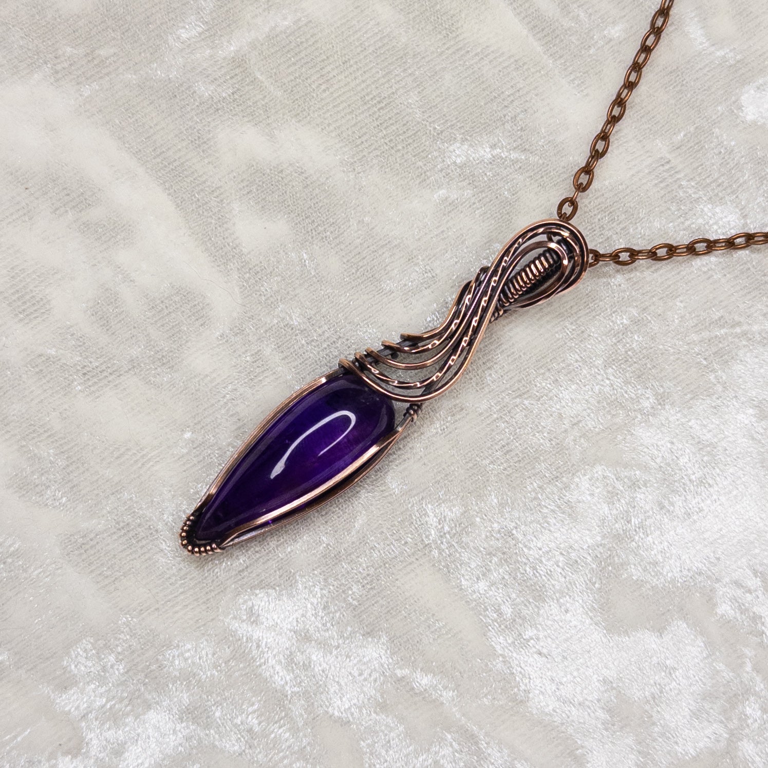 The wire will oxidize (tarnish) naturally over time. This process varies and can be influenced by the oils from someone’s skin, moisture in the air, or coming into contact with water/sweat/lotion/perfume. I include a polishing cloth so when you feel like the pendant needs brightened up gently rub the wire with the cloth to remove oxidization.