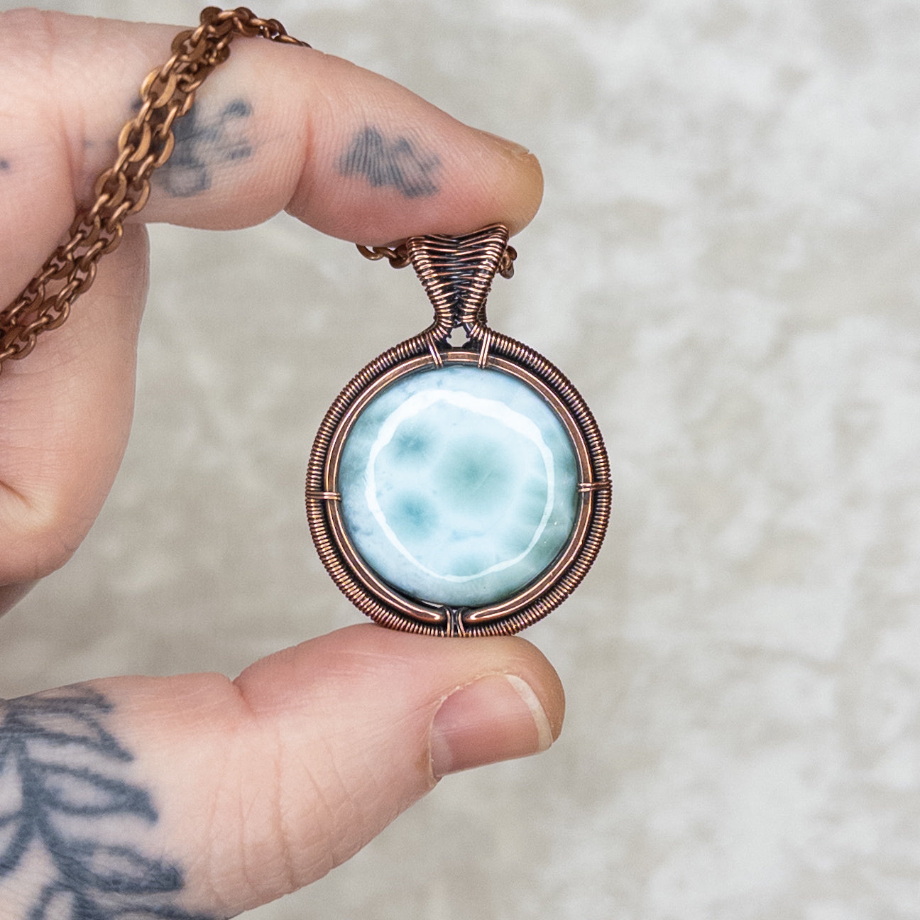 Larimar Antiqued Copper Medallion Pendant