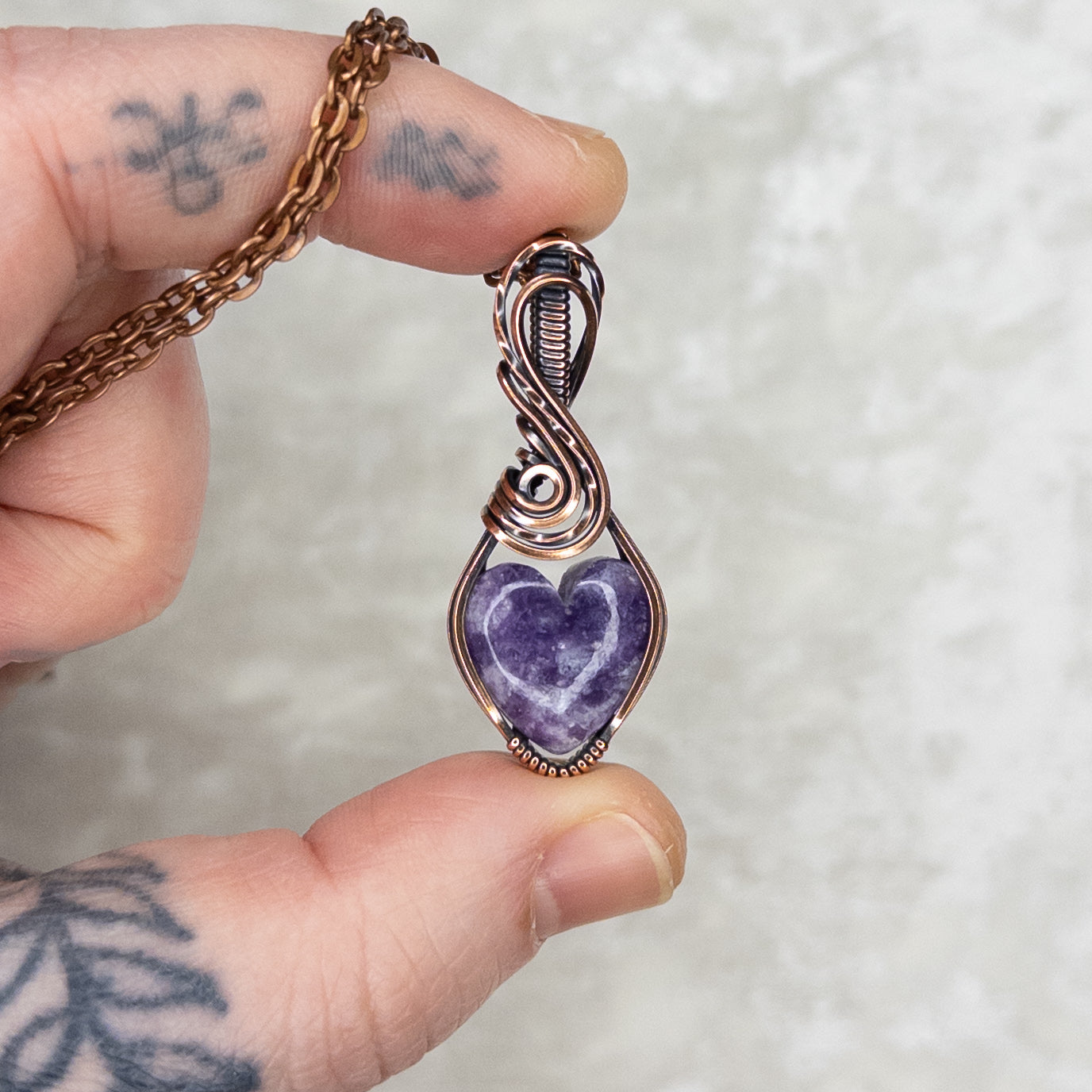 Lepidolite Heart Antiqued Copper Pendant