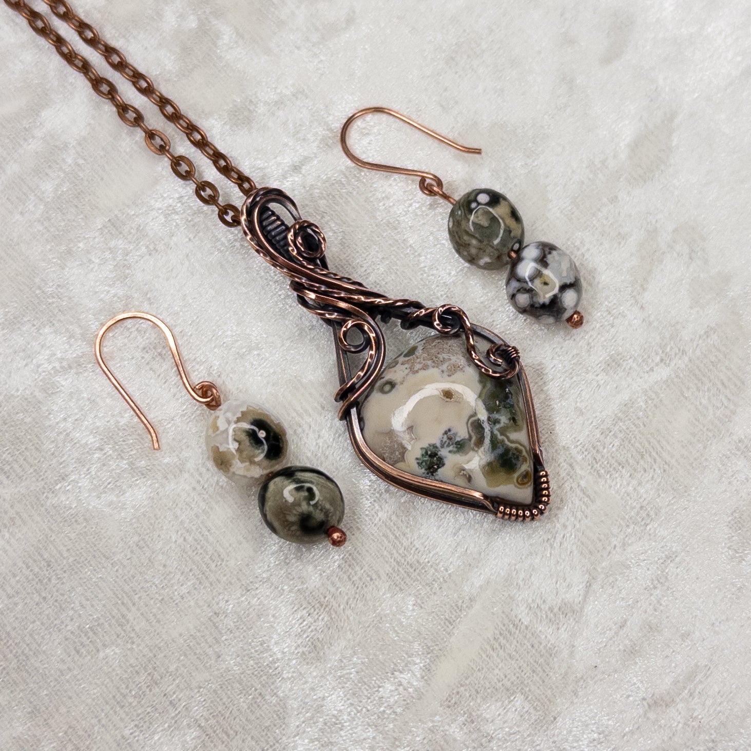 Ocean Jasper Antiqued Copper Pendant & Earring Set