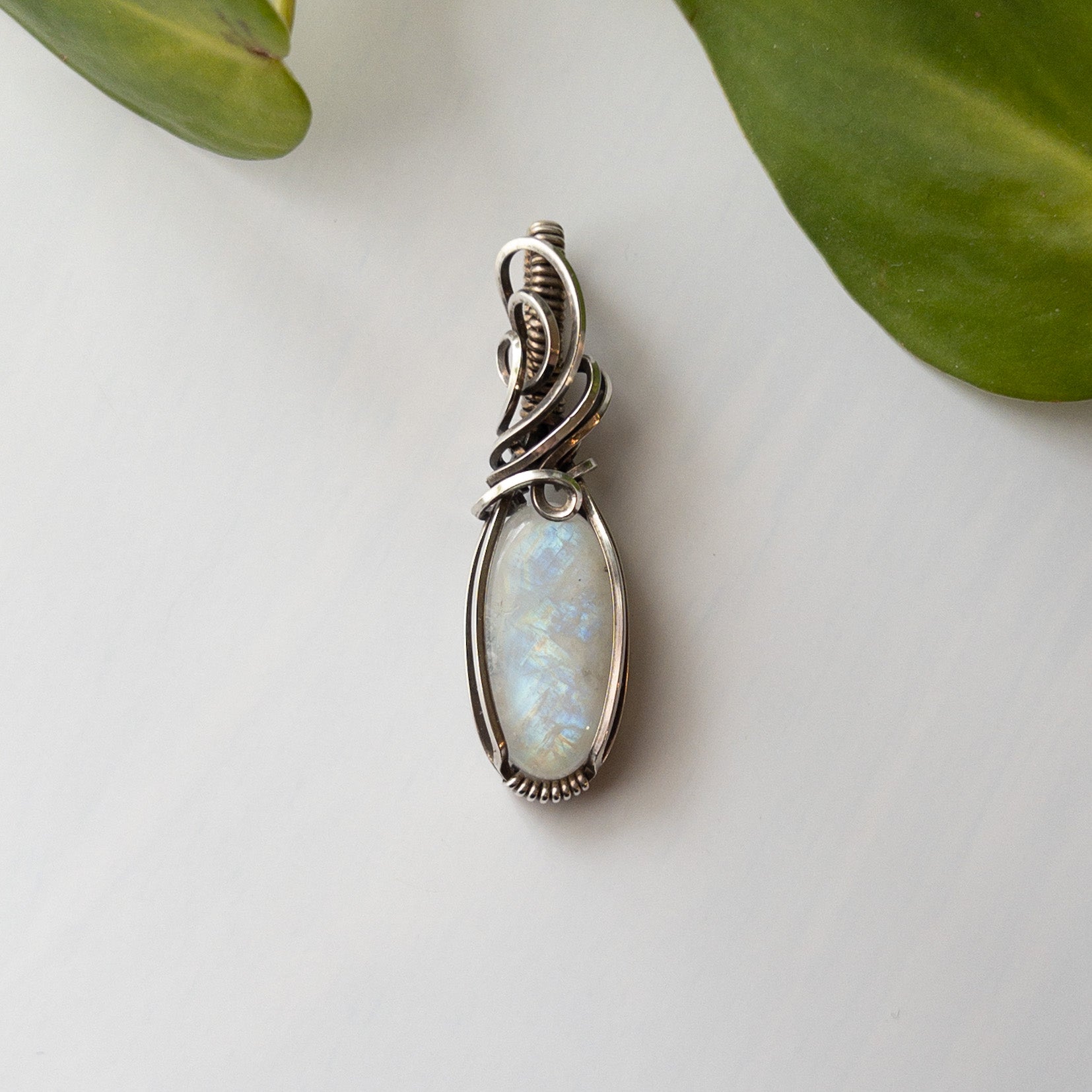 Rainbow Moonstone Sterling Silver Wrapped Pendant